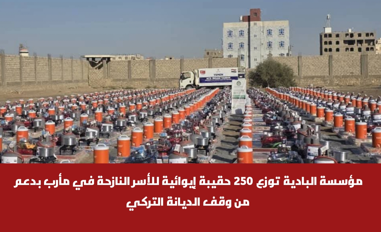 دشّن مدير عام الوحدة التنفيذية للنازحين ، سيف مثنى ، مع مؤسسة البادية للتنمية والأعمال الإنسانية، بالشراكة مع مؤسسة الأرض الطيبة الاجتماعية، اليوم، مشروع توزيع (250 حقيبة إيوائية) للأسر النازحة في محافظة مأرب، بتمويل كريم من وقف الديانة التركي، في إطار الجهود الإنسانية المشتركة للتخفيف من معاناة النازحين وتحسين ظروفهم المعيشية.