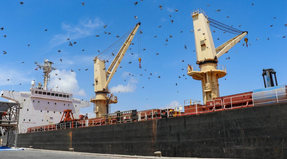 بعد رحلة محفوفة بالمخاطر ها هي سفينة سي شامبيون ترسو في ميناء عدن، تحمل شحنة من الحبوب قادمة من الارجنتين،